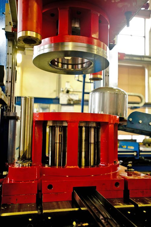 The submerged arc welding technique is applied on the welding of body halves on the seam welding machine and generally on the wielding of the valve boss to the upper cylinder halve. The welding automats with reliable welding power packs and control units are utilized to achieve the uncompromising weld quality with degree of automation needed for the required production capacity per customer. The MIG/MAG welding technique is applied for the welding of foot rings and valve guard rings with the body halves.