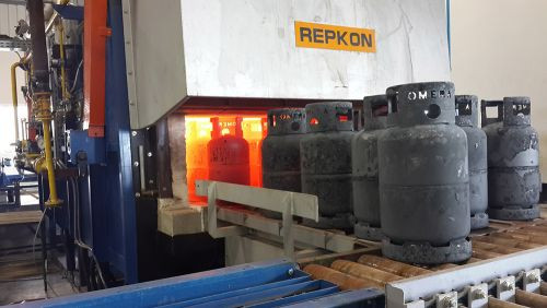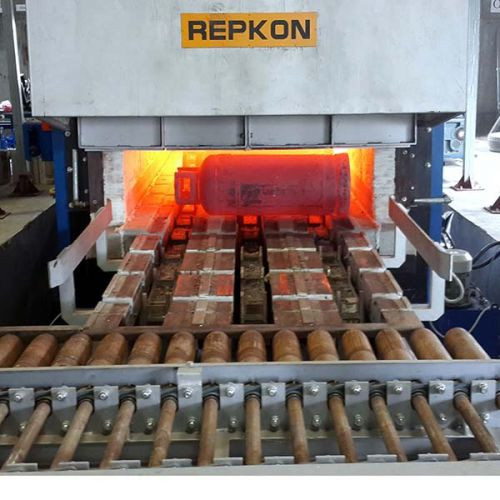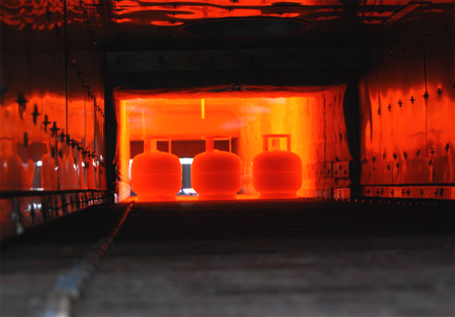 In order to relive all the stresses caused by forming and welding operations, the cylinders are passed through a heat treatment furnace where they are exposed to 930 º C degrees of temperature for certain time before getting cooled gradually.